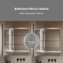 Illuminate your bathroom with integrated LED lights elegantly adorning all four sides of the mirror door. With a two-color light strip featuring 120pcs/meter and 12W output, you can adjust from warm 3000K to cool 6500K, ensuring optimal lighting for every occasion. The mirror's high CRI (>80) guarantees accurate colors, making daily grooming a pure delight.